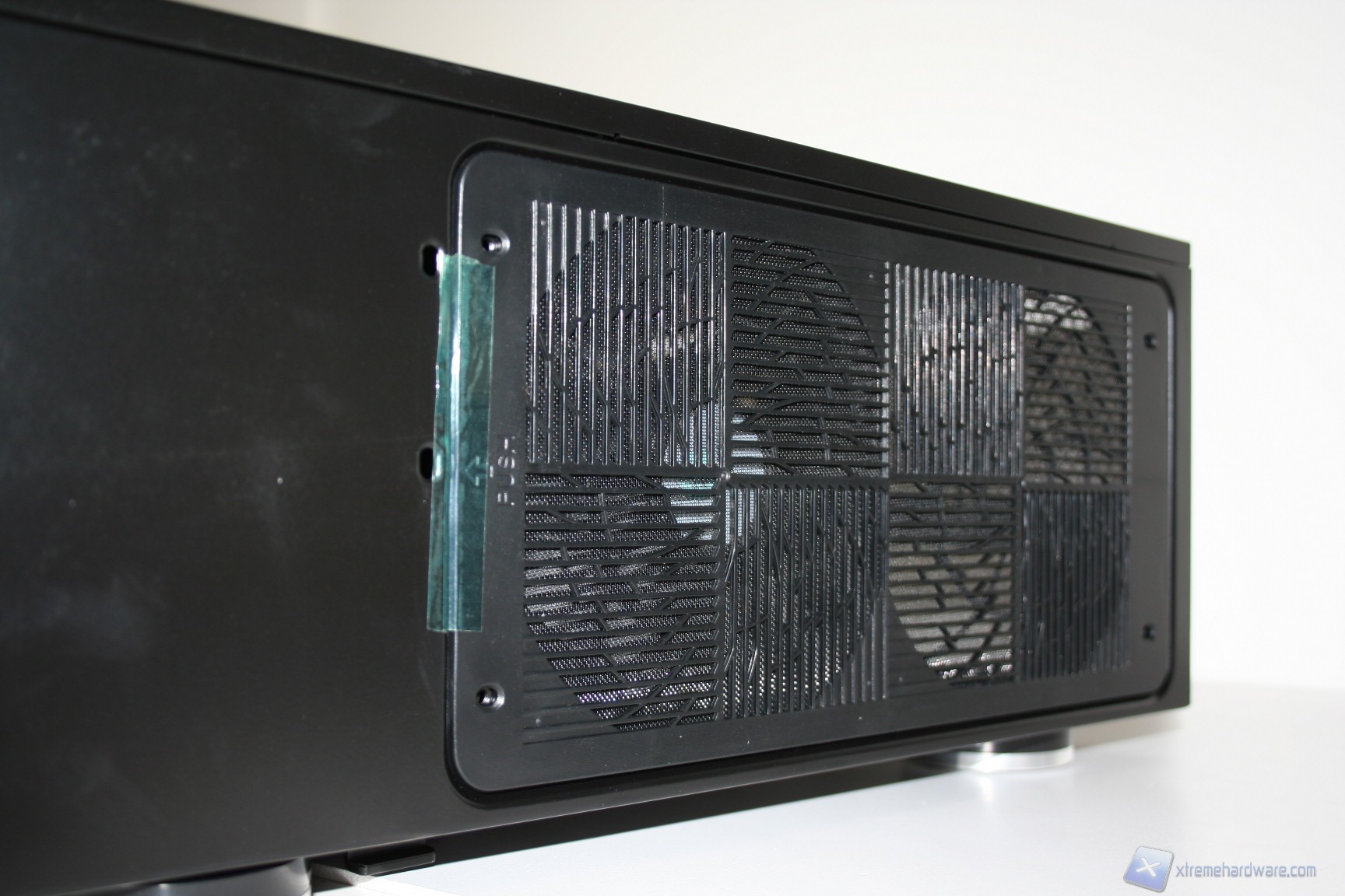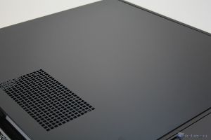 La parte superiore è caratterizzata semplicemente da una paratia, avente un’unica apertura con una griglia di aerazione, che permetterà il passaggio dell’aria dalla sottostante ventola da 120mm. Questa paratia superiore può essere facilmente rimossa tramite due viti nella parte posteriore.